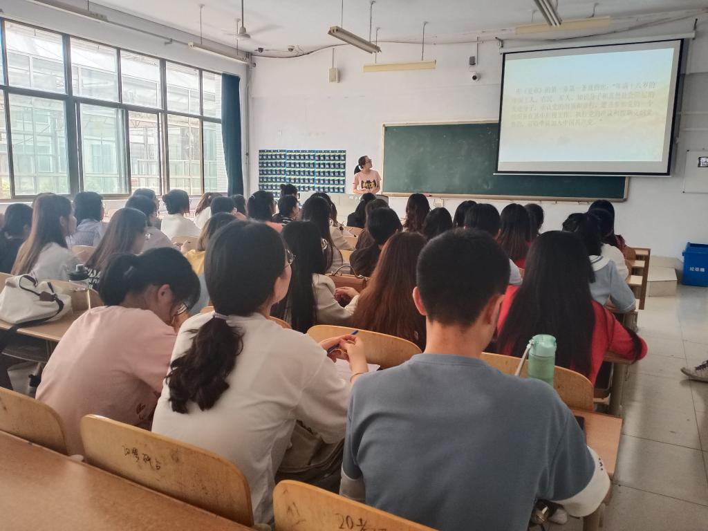 郑老师以“史上最牛的创业团队就是中国共产党”导入课堂学习。郑老师提出作为新时代的中国共产党员,一定要了解党的过去,关注党的未来,教育同学们聚焦党史学习主题,通过看风格不同的书籍、从历史的长河中去观察历史人物的抉择、多听听经典的红色歌曲等多角度学习党史;郑老师强调了作为党员,要以党的信仰为信仰,以党的责任为志愿,对党、对人民有情感认同,做到爱党、亲党,树立为人民群众服务的理念,做一个有信仰、无私奉献的人。