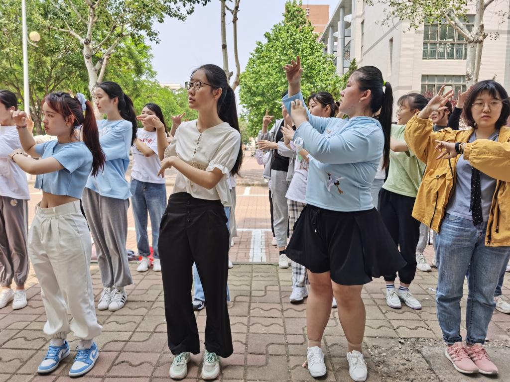 排练期间,同学们专注学习、互相交流,遇到不会的动作及时请教身边的同学,很快就学会了整套动作。正式拍摄时,伴随着激昂动听的音乐,同学们带着微笑的面孔,舞动着爱的手指,传播着爱的希望。传神的语言,舞动的姿态,无言的情感从同学们的指间流出,整齐划一的动作令人赏心悦目。同学们在聆听音乐、做手语舞的同时也在音乐与心灵的交融中受到了震撼,他们细细品味歌词的内涵,歌词讲述了在中国共产党的坚强带领下,中华儿女矢志不渝、奋发图强,为实现中华民族伟大复兴中国梦而不懈努力。此次活动同学们用无声的语言,表达了他们“感党恩,听党话,跟党走”的深厚情感,以自己独特的方式向党的100年华诞献礼!