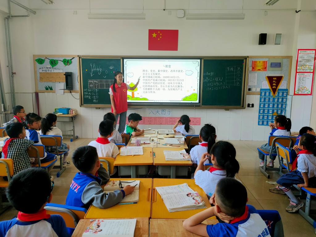 此次活动由志愿者老师为附小一年级的学生讲解交通植物的知识并进行党史知识的科普。为了充分调动孩子们的参与积极性,志愿者老师首先用一段有趣的视频开启了整堂课的学习。课堂上,志愿者老师通过PPT播放,利用形形色色的植物图片,向小朋友们讲解了生活中常见交通绿化植物的特征与作用,使小朋友们深刻理解到了道路两旁种植绿植的真正原因。孩子们在志愿者老师的引导、讲解下,不断地判断、分析问题,从简单的认识到深刻的理解,极大的提高了自身交通知识的储备。课堂的最后,志愿者老师向同学们科普了四史小知识,教导他们要时刻心存爱党爱国之情。此次爱心课堂活动让小朋友们树立了交通安全意识,学习到了绿化植物的相关知识,同时也让孩子们在学习的同时,深刻理解党的使命,感悟自我做好“接班人”的责任与担当。
