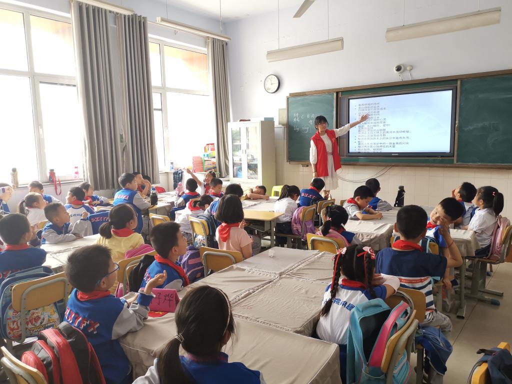 课堂开始,志愿者老师通过图片向小学生们展示了五四英雄的斗志昂扬,这种富有年代感的黑白图片,深深地吸引了小学生们的好奇心。以五四运动100周年为契机,志愿者老师讲述了五四运动的光辉历史,教育小学生要努力学习,引导他们树立社会责任感,空气中充盈着同学们积极的气息。志愿者老师带领小学生们融入到五四青年节氛围中去,用快乐去浇灌,用热情去培育,在小学生心里树立起五四青年的榜样。