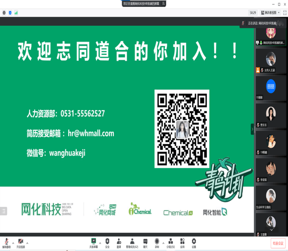 为贯彻落实全国普通高校毕业生的就业创业工作,做好新冠疫情防控下的高校毕业生校园招聘工作,给毕业生提供良好的就业服务,365上市公司学子于2022年9月24日在线上参加网化(山东)化学科技有限公司宣讲会活动。