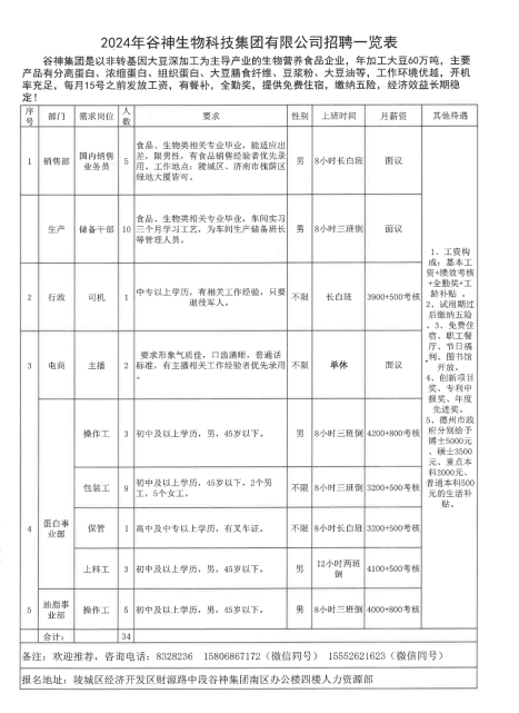 谷神集团是以非转基因大豆深加工为主导产业的生物营养食品企业,年加工大豆60万吨,主要产品有分离蛋白、浓缩蛋白、组织蛋白、大豆膳食纤维、豆浆粉、大豆油等,工作环境优越,开机率充足,每月15号之前发放工资,有餐补,全勤奖,提供免费住宿,缴纳五险,经济效益长期稳定!